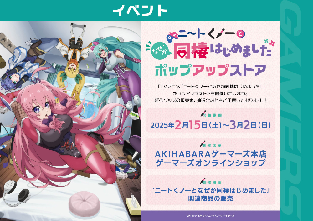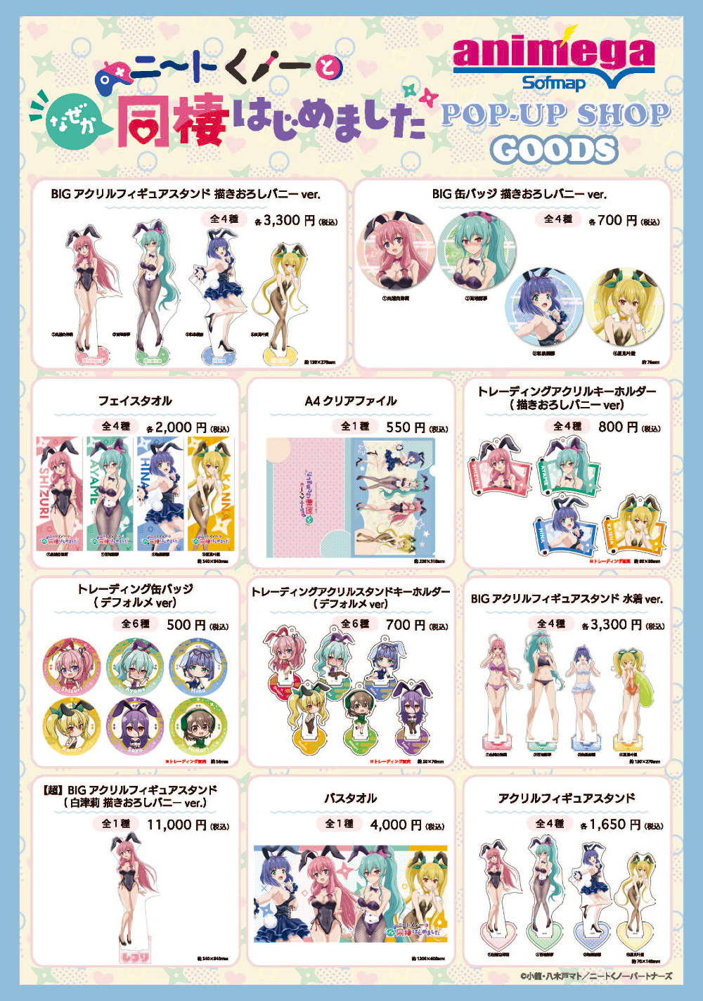 「ニートくノ一となぜか同棲はじめました」のキャラクタースタンディの展示とグッズの販売が決定しました!